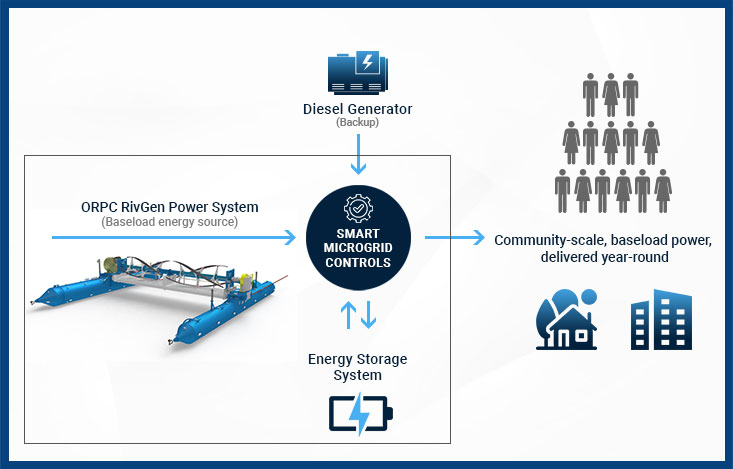 In areas of the world that are prone to natural disasters and disruptions in power supply, electric customers are deploying local renewable energy systems to secure a reliable and autonomous backup power supply. When integrated with other renewable energy sources, the predictable power generation from ORPC’s RivGen Power System creates a baseload-renewable energy supply capable of serving loads indefinitely.